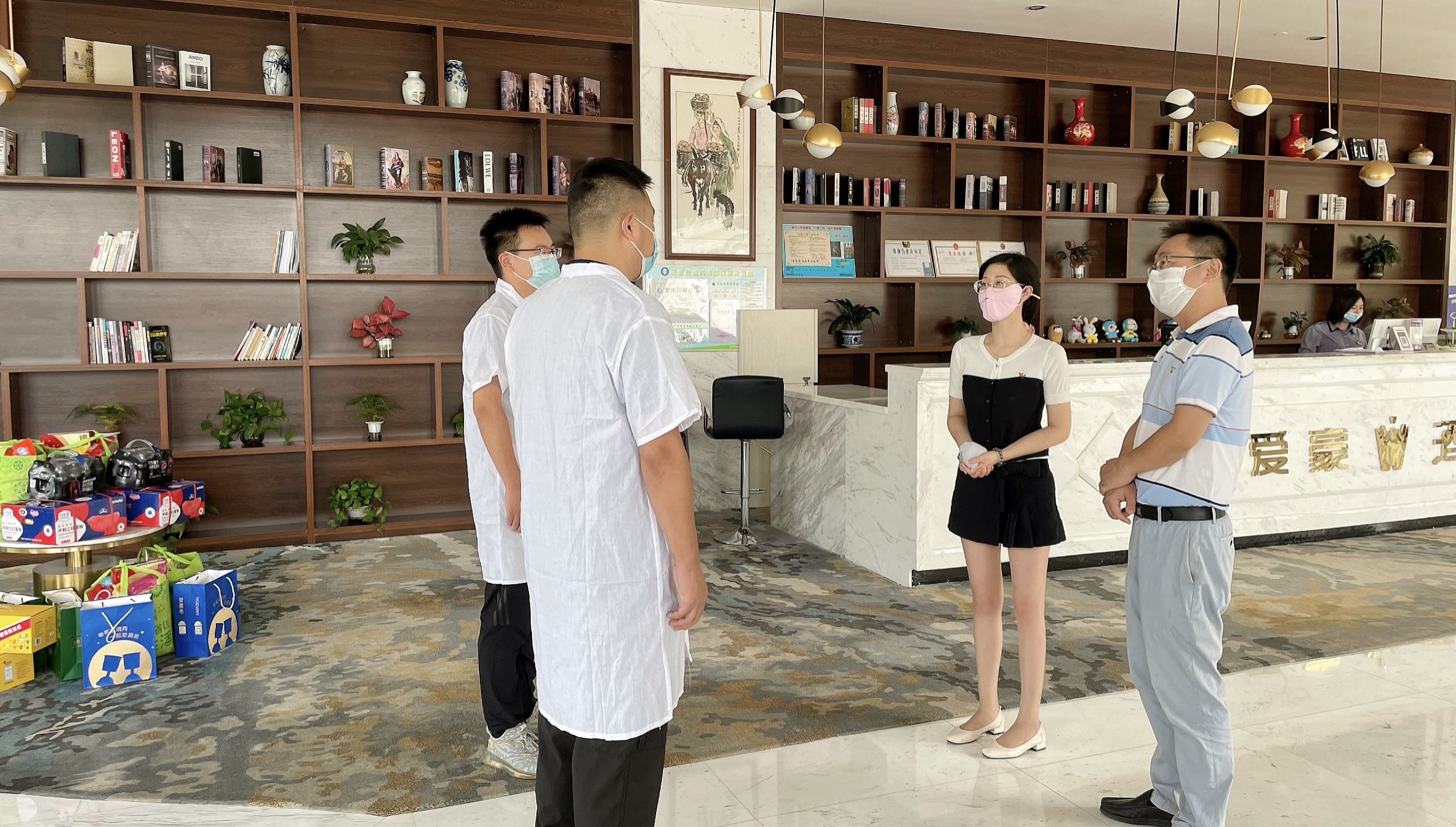 2021年9月28日,产业园公司副总经理胡皜、副总经理史金融深入武汉火车站驻点,慰问看望我司奋战在高温现场的驻点火车站防疫专班人员,并给大家送去了节日祝福。