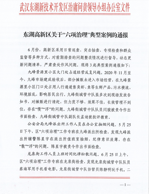 东湖高新区关于“六项治理 ”典型案例的通报