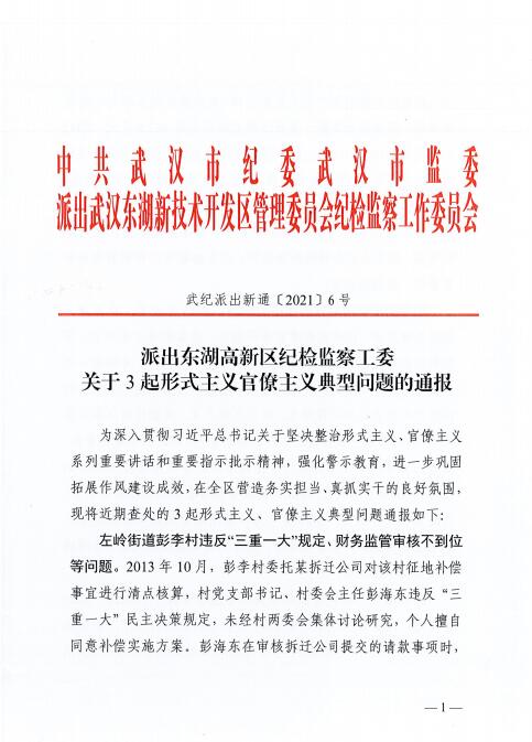 派出东湖高新区纪检监察工委关于3起形式主义官僚主义典型问题的通报